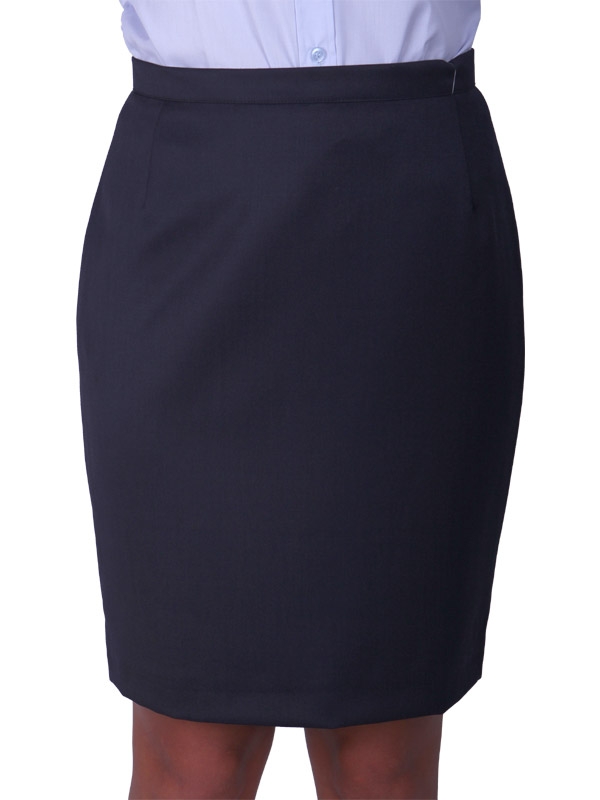 Dámská sukně pod kolena, rozparek na zadním švu uprostřed.
