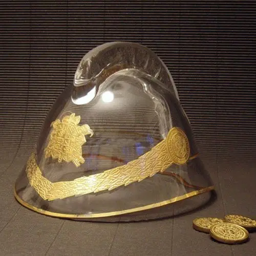 Vhodný dárek pro jubilanty a zasloužilé členy sboru - skleněná přilba se zlatým zdobením.