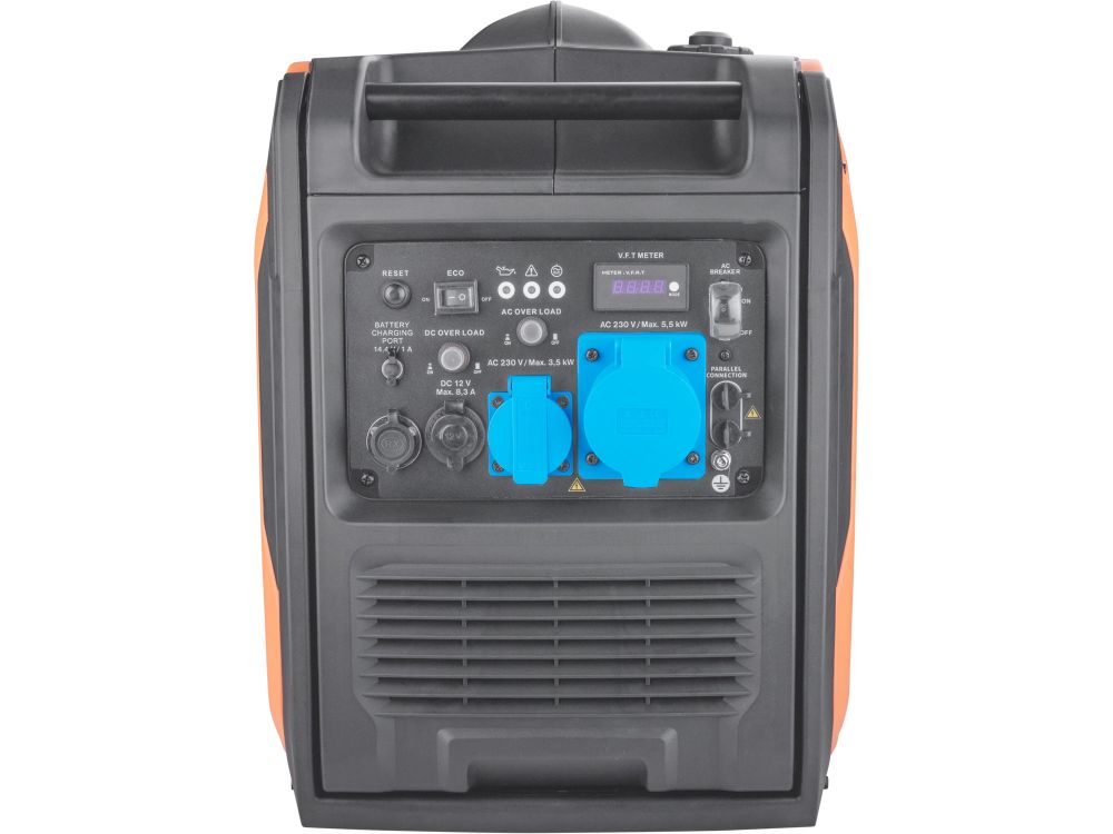 Díky funkci inteligentní regulace otáček v závislosti na spotřebě je tato digitální elektrocentrála až o 40% ekonomičtější oproti běžným elektrocentrálám. Navíc má možnost zapnout ekonomický režim provozu, kdy se sníží otáčky motoru, výkon, ale i spotřeba, což se hodí pokud nevyužíváte elektrocentrálu na plný výkon. Na panelu elektrocentrály je jedna 16A zásuvka a jedna 32A zásuvka s 230V, které umožňují připojit vysoko odběrové spotřebiče s celkovým špičkovým výkonem až 6,5kW. Dále je vybavena 12V auto zásuvkou se stejnosměrným proudem, která umožňuje použití různých 12V spotřebičů (např. USB nabíječka, kompresor, lednička, …). Součástí příslušenství jsou rovněž nabíjecí kabely, díky nimž lze elektrocentrálou dobíjet 12V autobaterie.