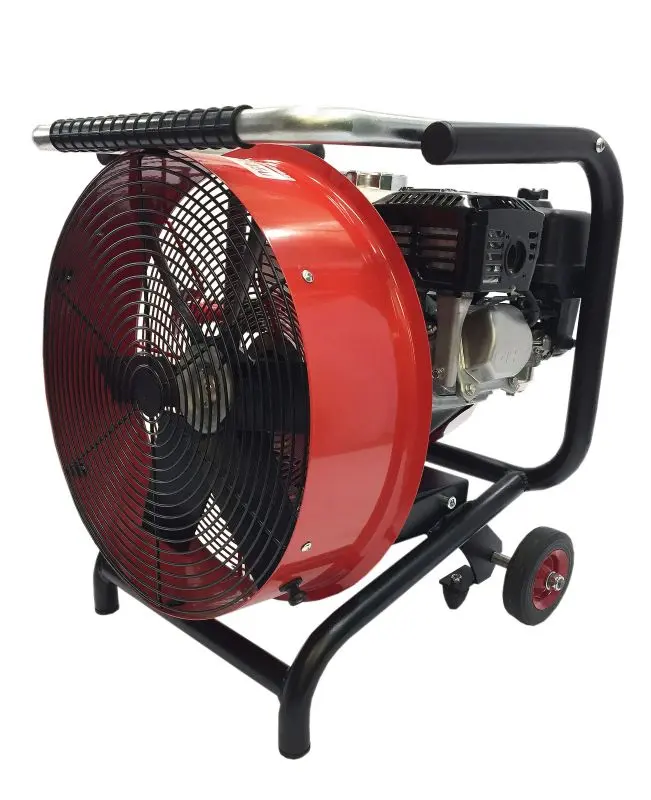 Srdcem ventilátoru je velmi osvědčený a bezproblémový motor HONDA GX200. Jde o 4 taktní motor o výkonu 4,1 kW, při 3600 ot/min. Motor má velmi malou spotřebu paliva, kterým je benzín BA95. Ve spojení s rotorem, který má průměr 45 cm, vyvine maximální rychlost vzduchu 90 km/hod., celkový výkon je pak 38 000 m3/hod. Při plném počtu otáček ventilátor běží 90 minnut a hladina hluku, kterou vytvoří, je 101 dB ve vzdálenosti jednoho metru.