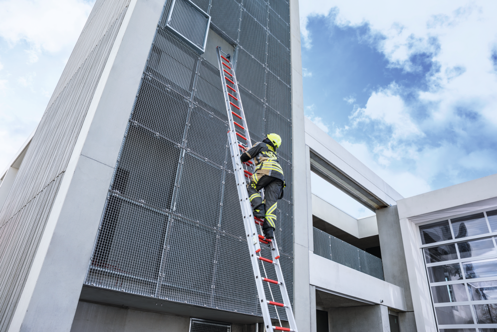Dvoudílný hliníkový žebřík s lanovým pohonem je spolehlivý záchranný prostředek vyrobený v souladu s normou DIN EN 1147. Oproti třídílnému provedení nabízí jednodušší manipulaci a rychlejší nasazení, což ocení zejména jednotky při operativních zásazích.