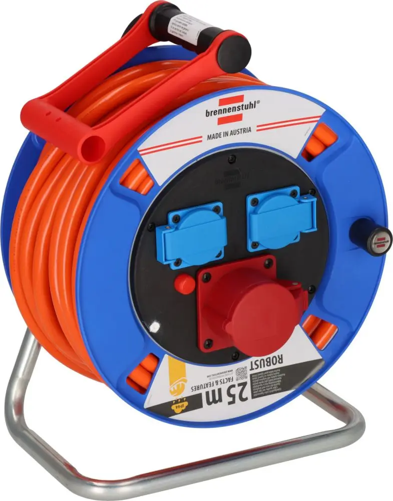 Tělo bubnu je ze speciálního plastu na pozinkovaném nosném rámu, což je ideální pro průmysl, staveniště a trvalé venkovní použití. Kabelový buben je vybaven inovativní rukojetí "Cablepilot". Ta zajišťuje dokonalé vedení kabelu, vyklápí se na obě strany a usnadňuje přenášení a zavěšení.