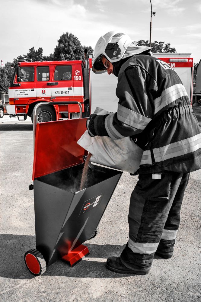 Plechový posypový vozík SDC 05 je určen k použití všude tam, kde je třeba aplikovat sypké sorbentní látky při likvidaci úniku nežádoucích nebo nebezpečných kapalin (např. ropné produkty, kapalné chemické látky). Je vhodný pro všechny běžně používané druhy sorbentů (včetně lehkých a vláknitých materiálů). Celý plášť vozíku a víko je z plechu, čímž je zajištěna větší tuhost konstrukce a ochrana sorbentu před deštěm.