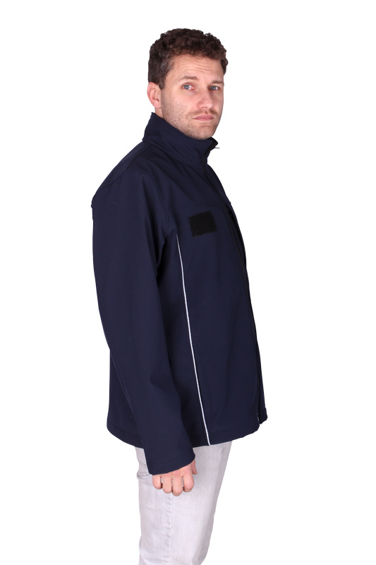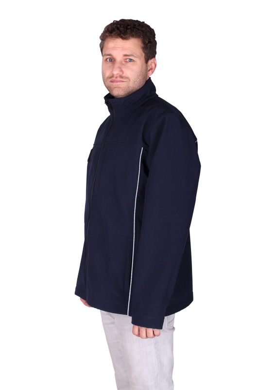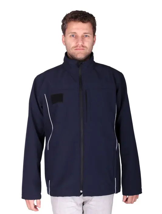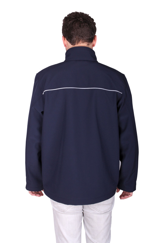 Barva je tmavomodrá se svislými šedomodrými výpustky, lícová strana vzdušná, ale nepromokavá, rubová strana příjemný a hřejivý fleece.