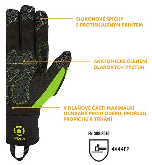 - dlaň: podšívka z úpletu Kevlar® / PES / skelné vlákno - vysoká odolnost vůči prořezu