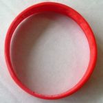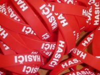 Gumový náramek na ruku s logem HASIČI má červený podklad s plastickým bílým nápisem. Obvod náramku je 20 cm.