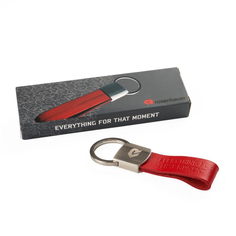 Kožená klíčenka z kolekce "Everything for that moment" - "Vše pro ten okamžik". Klíčenka je vyrobená z pravé kůže s otočným kroužkem na klíče. Na kožené části je vyraženo "Everything for that moment" a logo Rosenbauer na kovové části.