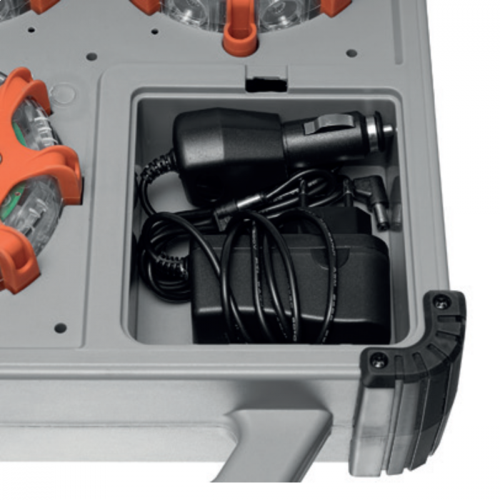 Výkonné výstražné puky, které se samy synchronizují tak, aby vytvořily jednu souvislou sekvenci blikání. Jsou velice jednoduché na použití, stačí pouze vytáhnout z přenosné nabíjecí základny a samy se spojí jeden s druhým. Po skončení používání se opět pouze zastrčí zpět do základny a samy se vypnou. Dodávají se v sadě po 6 kusech společně s nabíjecí základnou. Nabízí 6 režimů blikání a 3 různé barvy v jednom (modrá, červená, oranžová). Výstražné blikání je viditelné ze vzdálenosti až 1 km a do všech směrů. Odolné jsou dle certifikace IP67, tudíž odolné proti prachu a vodotěsné do 1m. Odolný vůči pádu z výšky 5m. Vydrží zátěž až 3 tuny v případě, že by je přejelo vozidlo. Plavou na hladině a díky magnetu je lze připevnit na jakýkoliv kovový povrch. Nabíjí se přes základnu a v balení je jak 230V nabíječ tak 12V (10-12 hodin nabíjení, nabíjecí aku Li-ion, doba použití až 80 hodin)