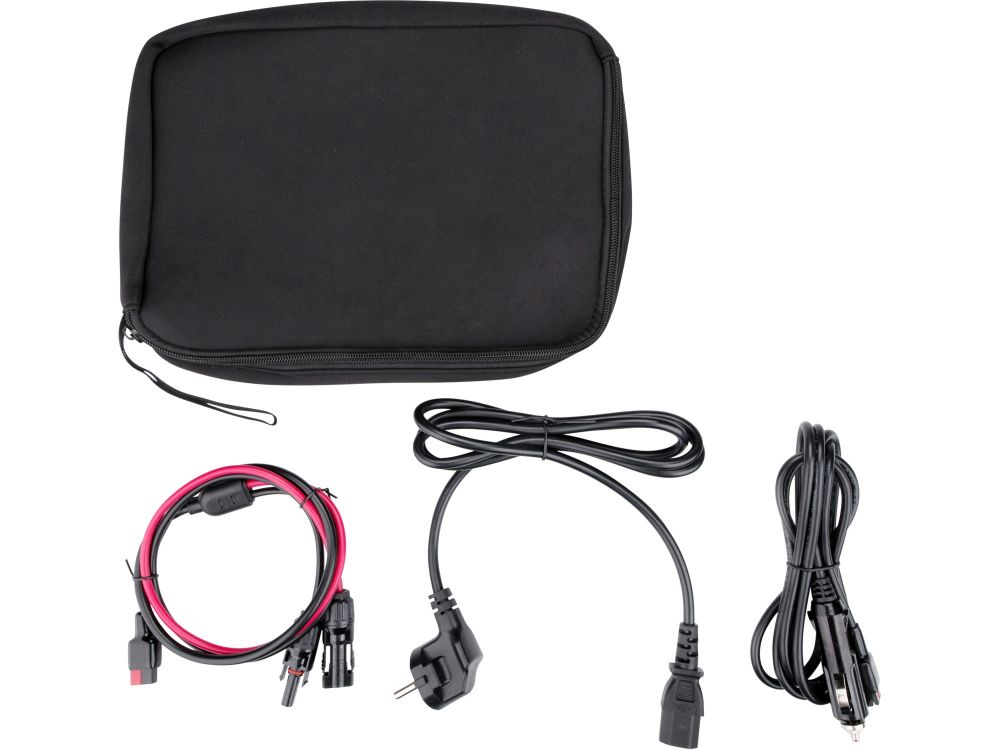 - příslušenství: napájecí kabely: 230V, 12V autozásuvka, kabel pro solární panel (anderson–MC4)