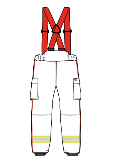 • všechny zatěžované švy na kalhotách jsou zajištěny červeným prošitím