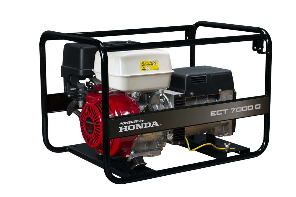 Elektrocentrála ECT 7000G: model velké, třífázové elektrocentrály s regulací výstupu indukčním trafem. Výkonný a vysoce odolný alternátor pohání spolehlivý profesionální motor řady GX s dlouhou životností a to vše ukotveno v pevném a odolném ocelovém rámu.