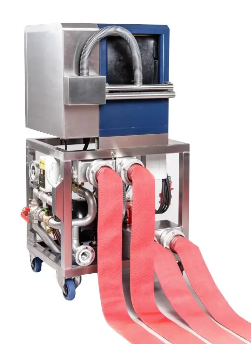 Tři funkce v jednom zařízení pro praní, sušení a tlakovou zkoušku až dvou hasičských tlakových hadic velikosti B, C a D současně nebo jedné velikosti A.