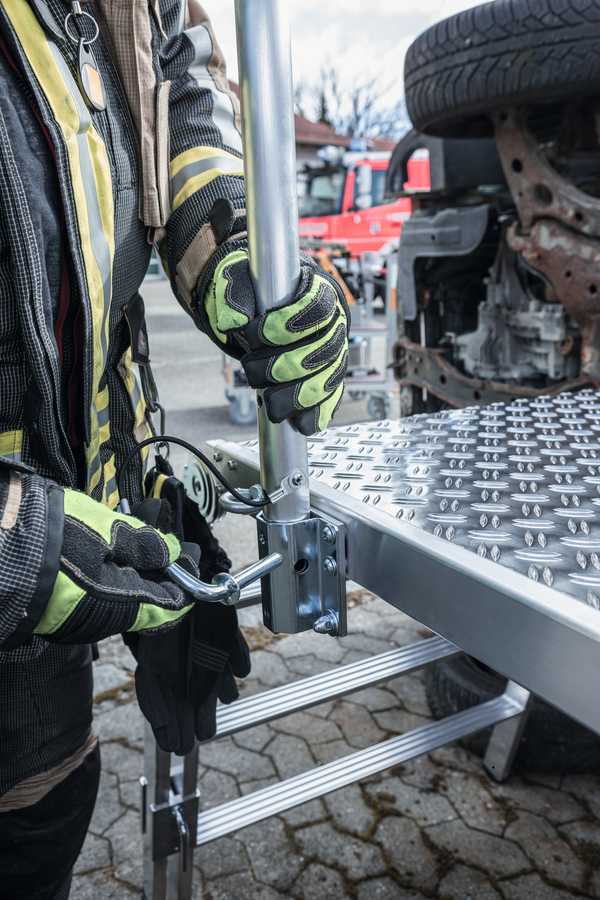 Zasunovací zábradlí z hliníku je praktickým doplňkem pro záchranné a pracovní plošiny MUNK, který zvyšuje bezpečnost při práci ve výškách. Díky své robustní, ale lehké hliníkové konstrukci nabízí spolehlivou ochranu bez zbytečného zatížení celé plošiny.