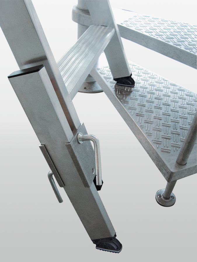 Tento doplněk slouží k bezpečnému ustavení plošiny na nerovném povrchu a zajišťuje její stabilitu i v náročných podmínkách. Je výškově nastavitelný a v případě potřeby jej lze snadno připevnit k noze plošiny, čímž umožňuje rychlé přizpůsobení aktuální situaci na místě zásahu či práce.