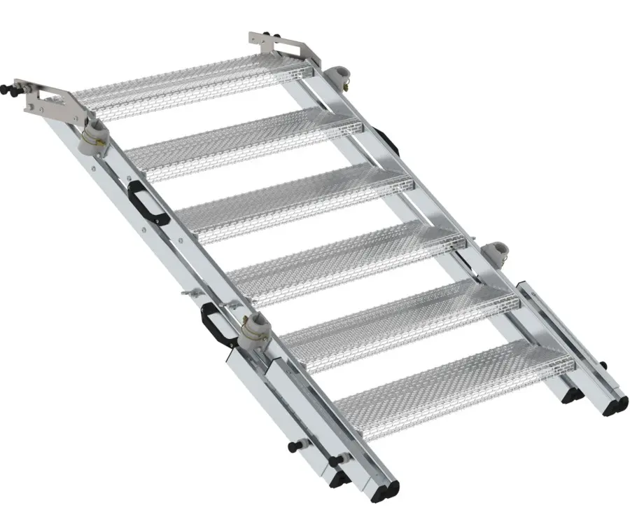 Schodiště je určeno pro použití se záchrannou plošinou Premium a je navrženo jako flexibilní hliníkové schodiště Vario. Umožňuje snadné nastavení i aretaci požadovaného sklonu a výšky bez nutnosti použití nářadí. Všechny čtyři nosníky jsou standardně vybaveny prodlouženími, která umožňují vyrovnání výšky až do 300 mm, přičemž aretace probíhá v rastru 30 mm. Jednotlivé schody mají protiskluzový povrch třídy R13, což zajišťuje bezpečný pohyb i v náročných podmínkách.