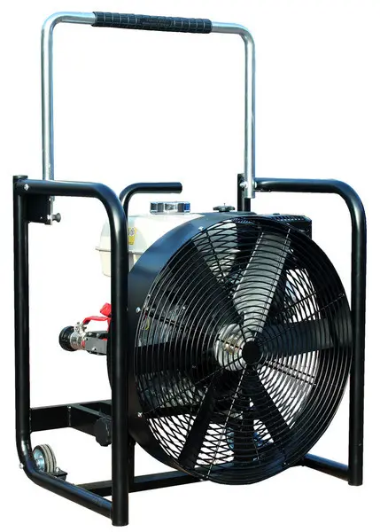 Srdcem ventilátoru je velmi osvědčený a bezproblémový motor HONDA GX200. Jde o 4 taktní motor o výkonu 4,1 kW, při 3600 ot/min. Motor má velmi malou spotřebu paliva, kterým je benzín BA95. Ve spojení s rotorem, který má průměr 45 cm, vyvine maximální rychlost vzduchu 90 km/hod., celkový výkon je pak 38 000 m3/hod. Při plném počtu otáček ventilátor běží 90 minnut a hladina hluku, kterou vytvoří, je 101 dB ve vzdálenosti jednoho metru.