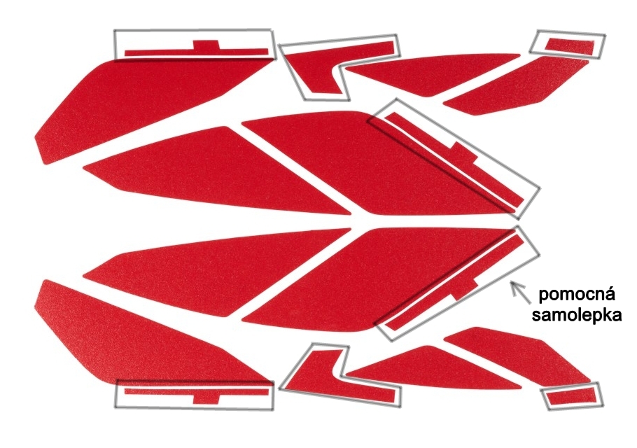 Pomocné samolepky (viz. fotografie) na přilbu NEPATŘÍ.